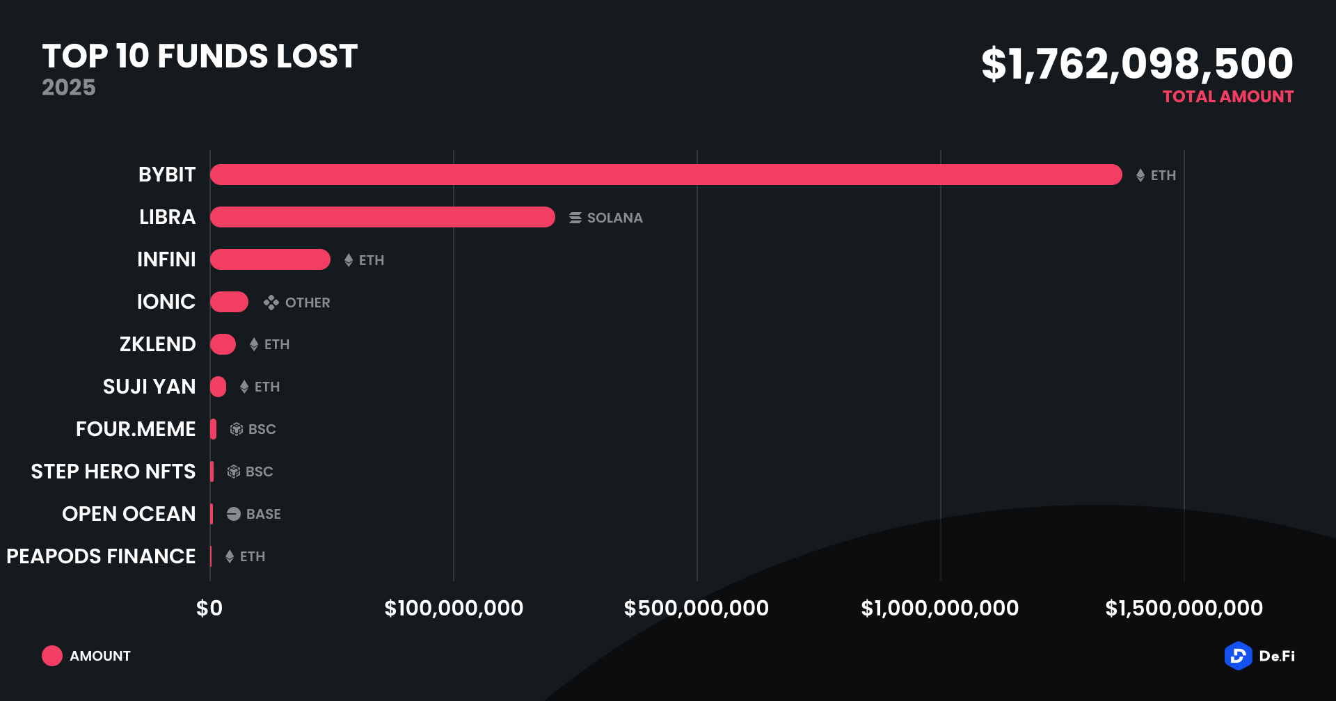 February 2025 total losses have been $1,762,098,500, a huge jump from January 2025’s total of $94,417,000 and a 1,871% month-over-month rise – the dramatic escalation in losses is an intensification of the scale and frequency of the attacks. Both the increased sophistication of the exploits as well as the size of the projects that are being targeted seem to indicate an increased prevalence of coordinated attacks on both high-level as well as small protocols.