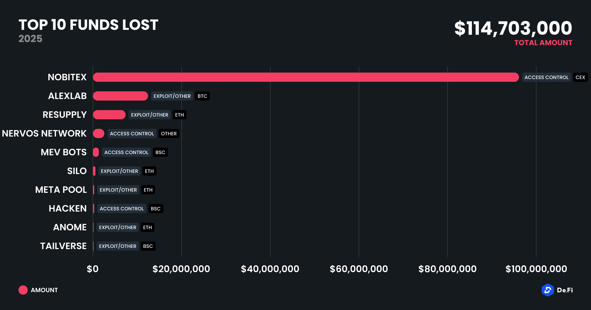 The month was marked by an abrupt return to centralized exchange exploits, as Nobitex’s access control problem alone resulted in more than 70% of the total month losses. Other significant incidents included the $16.1 million stolen from Bitcoin Layer 2 protocol AlexLab and the $9.5 million attack on Ethereum-based protocol Resupply.